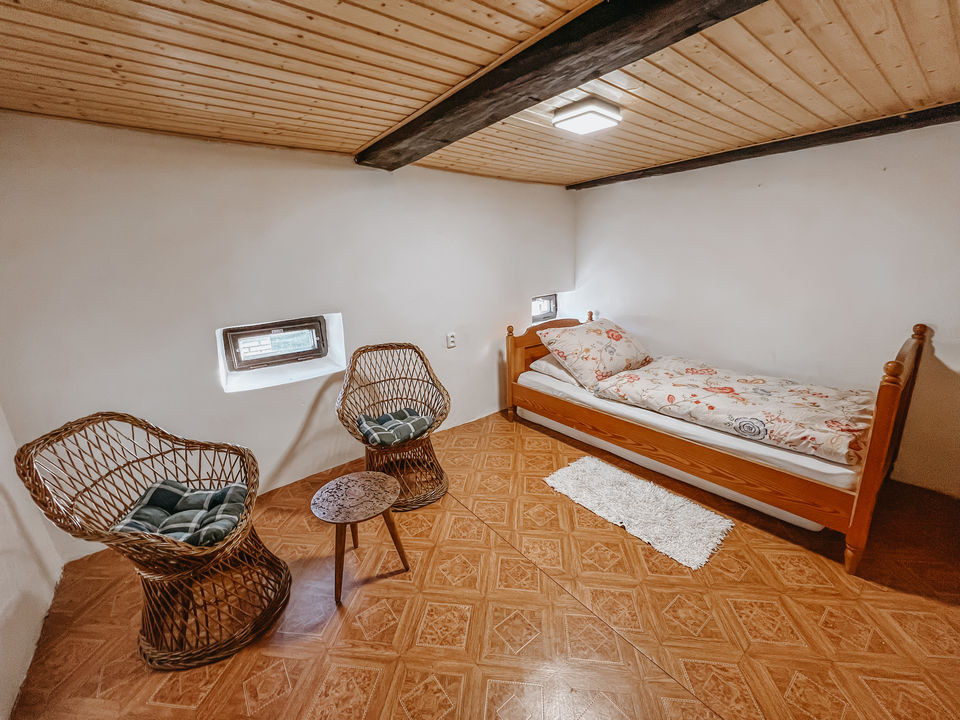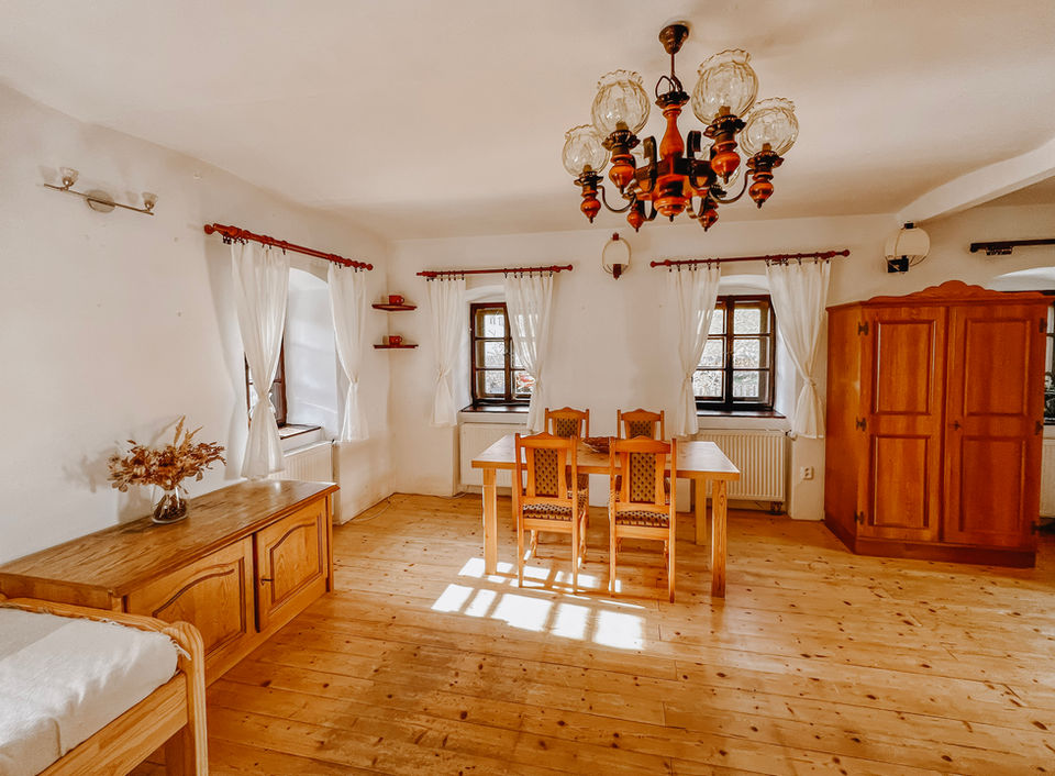 Vnitřní prostory chalupy mohou zůstat zachovány, avšak půdní prostor přímo vybízí k stavebnímu zásahu, po kterém by se ve světnici otevřel celý krov. Vznikl by tak prostor i na malou galerii s přístupem do pokojů. K chalupě náleží stodola, která by se dala přestavět na rustikální letní kuchyň. Bývalý vejminek si můžete proměnit na wellness se saunou a relaxační místností.